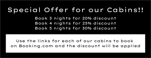 All cabins come with a firepit and outdoor seating, kitchen and bathroom area. We are dog friendly and able to welcome adults and children aged 12 and over.